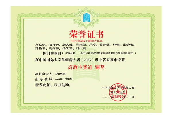 本网讯(通讯员 孙奥)近日,2025年中国国际大学生创新大赛湖北省复赛获奖名单正式公布。我校学子在高教主赛道中努力拼搏、奋勇争先,成功斩获银奖1项、铜奖2项,充分展现出扎实的专业功底、突出的创新能力与高效的团队协作精神。