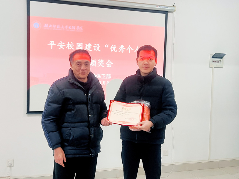 本网讯(通讯员涂亦乐)1月8日下午,湖北师范大学文理学院2025年度平安校园建设“优秀个人”颁奖会在后勤楼二楼会议室举行。本次会议旨在表彰先进、树立典型,进一步激发全校师生员工投身校园安全工作的热情与责任感。学校党委宣传部、后勤保卫部等相关职能部门负责人、各学院书记/副书记、学工办主任,以及本年度获得荣誉的师生代表参加了会议。会议由许涛副部长主持。