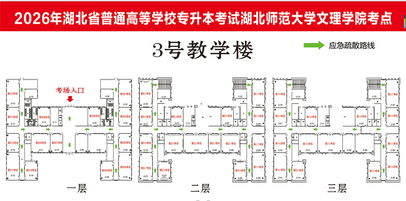 2026年湖北省普通高等学校专升本考试湖北师范大学文理学院考区考场分布图