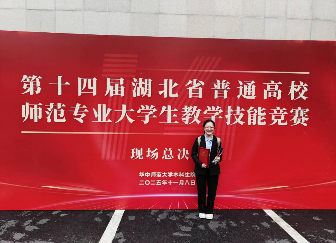 本次竞赛聚焦师范专业学生核心教学能力,涵盖教学设计、课堂展示、教学反思等多个环节,对参赛选手的专业知识储备和实践应用能力提出了高标准要求。备赛期间,涂紫怡同学在袁文博老师的悉心指导下,反复打磨教学设计,刻苦钻研教学技巧,不断提升自身教学素养。比赛中,她沉着冷静、从容应对,以清晰的教学思路、生动的课堂呈现和扎实的专业能力,充分展现了我院学子良好的精神风貌和过硬的专业素养,获得了评委的一致认可。