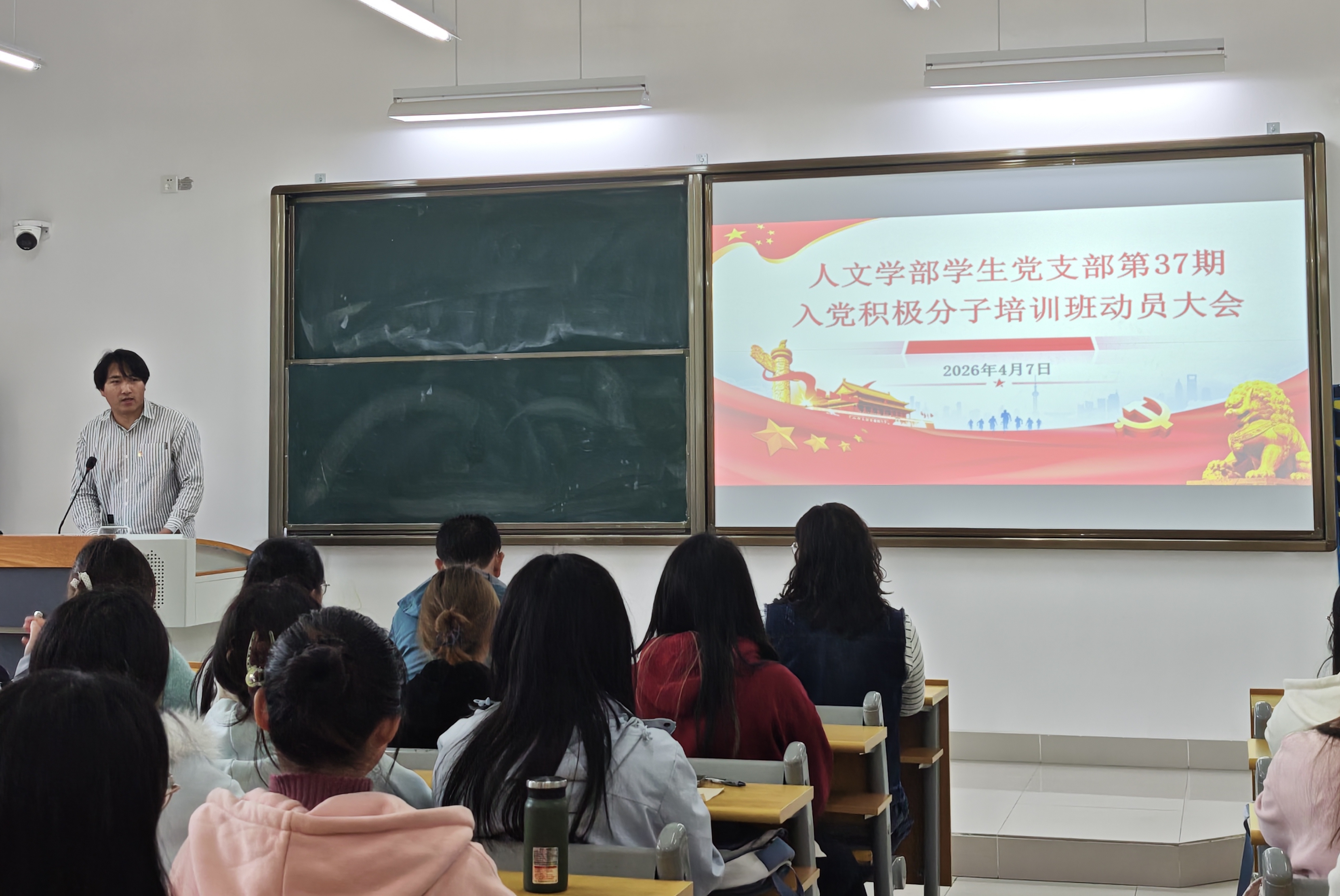 为强化青年思想引领,筑牢党建根基,守好意识形态阵地,4月7日在J3-105教室,人文学院召开第37期入党积极分子培训班动员大会。学院党总支书记周景斌、学工办副主任丁书嫚,学生党支部书记高悦及学院辅导员老师出席会议,本期全体入党积极分子参加会议。