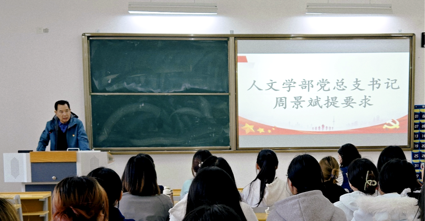 会议伊始,周景斌书记发表讲话。他向加入积极分子队伍的同学表示祝贺,强调作为人文学子,要扛起传承文脉、坚守意识形态阵地的使命,以党员标准严格要求自己,筑牢意识形态安全思想防线,将个人理想融入民族复兴伟业,争取早日达到党员标准。