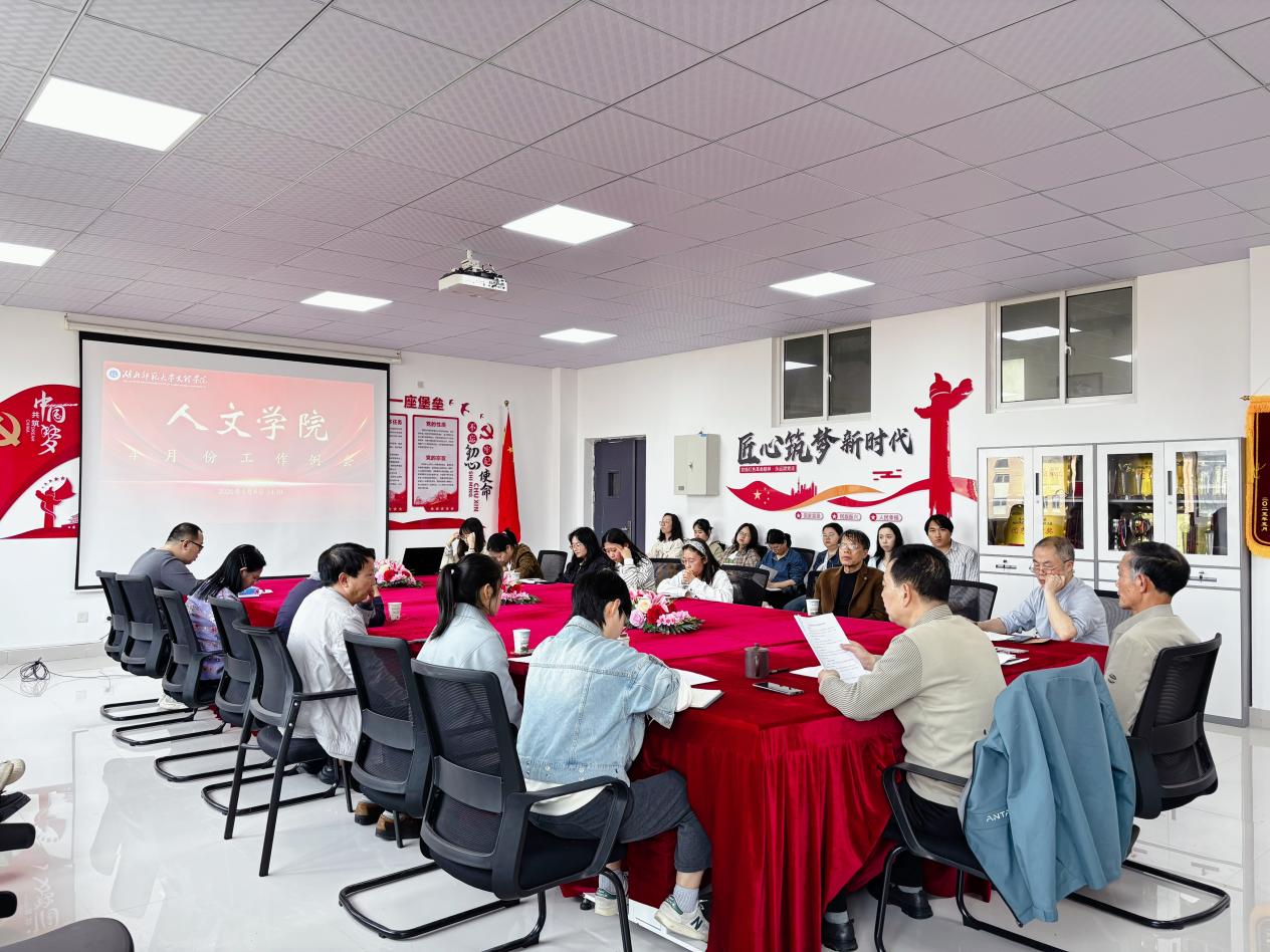 2026年4月8日14:30,人文学院4月份工作会议在405会议室召开。学院院长熊子延、党总支书记周景斌及全体教职工参会,会议由周景斌书记主持。