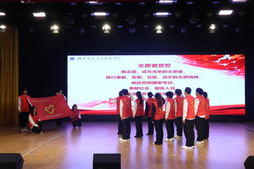 青年志愿者标兵带领全体志愿者庄严宣誓,誓词铿锵有力,彰显践行志愿精神、勇担青年使命的坚定决心。