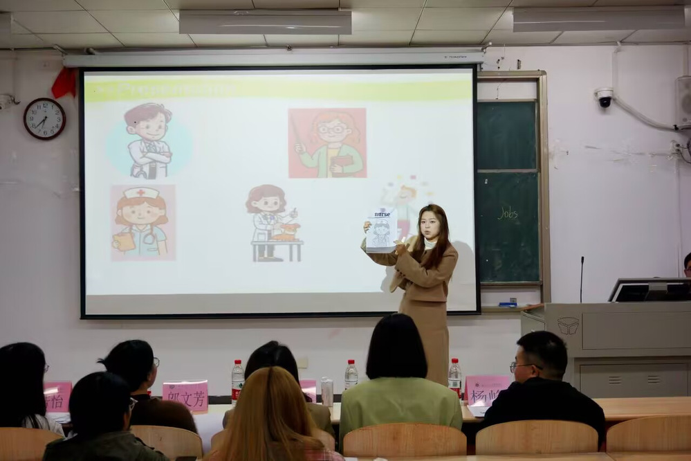 为强化师范生教学实践能力,搭建教学经验交流与风采展示的优质平台,推动学院教育教学工作迈向高质量发展新台阶,2025年10月27日晚18:30,湖北师范大学文理学院外国语学院教师技能讲课大赛在1B101教室顺利举行。评审团由英语教研室主任邓薇薇、团学指导老师杨峰,以及专任教师邬文芳、向若怡、李阿欣组成。