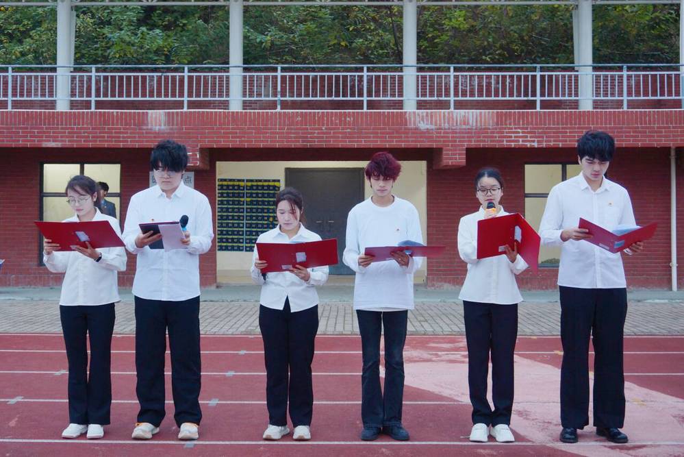 升旗礼毕,现场响起英文朗诵《我爱你中国》。同学们以流利的英文和真挚的情感,跨越语言界限,运用不同的语调与韵律,共同抒发对祖国的热爱。熟悉的告白以英文形式回荡校园,瞬间点燃全场氛围。六位学子将“我爱你中国”的深情,化作跨越语种的共鸣,为家国情怀披上“世界听得懂的浪漫”。随后,优秀学生党员代表黄立玲登台发言。她结合自身经历,娓娓讲述青年党员的担当故事,以实际行动诠释初心使命。她鼓舞外院学子不忘来时路、砥砺向前行,在青春征程中书写灿烂篇章。紧接着,优秀新生代表刘宜君分享了初入大学的憧憬与梦想,从“学外语只是掌握一门技能”,慢慢读懂“外语是连接世界的桥,更是外院人肩上的责任”,这份刚萌芽的使命认知正是青春最鲜活的成长注脚。教师代表江珉在讲话中勉励学子以语言为舟,承载中华文明破浪前行,在跨文化交流中传递东方智慧,让每一次对话成为文明互鉴的桥梁,以专业能力践行文明传播的时代使命。仪式尾声,党总支书记赵卫军作总结讲话。他寄语外语青年牢记“语言为桥,担当为魂”的使命,以青春之我、外语之能,积极传播中国声音,讲好中国故事,为学子指明前进方向,点亮理想明灯。