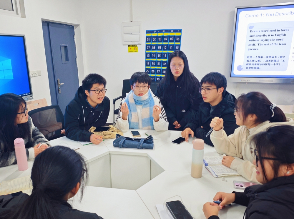 活动以“E-books or Paper Books”为核心议题,主持人循循善诱引导自由思辨,让同学们在观点碰撞中打破表达壁垒、畅抒己见;随后开展的“你画我猜”“口口相传”等互动环节,将词汇积累与情景表达融入趣味游戏,使学子们在轻松愉悦的氛围中主动开口、大胆交流,真切感受“以学为乐、以用促学”的课余提升之道。