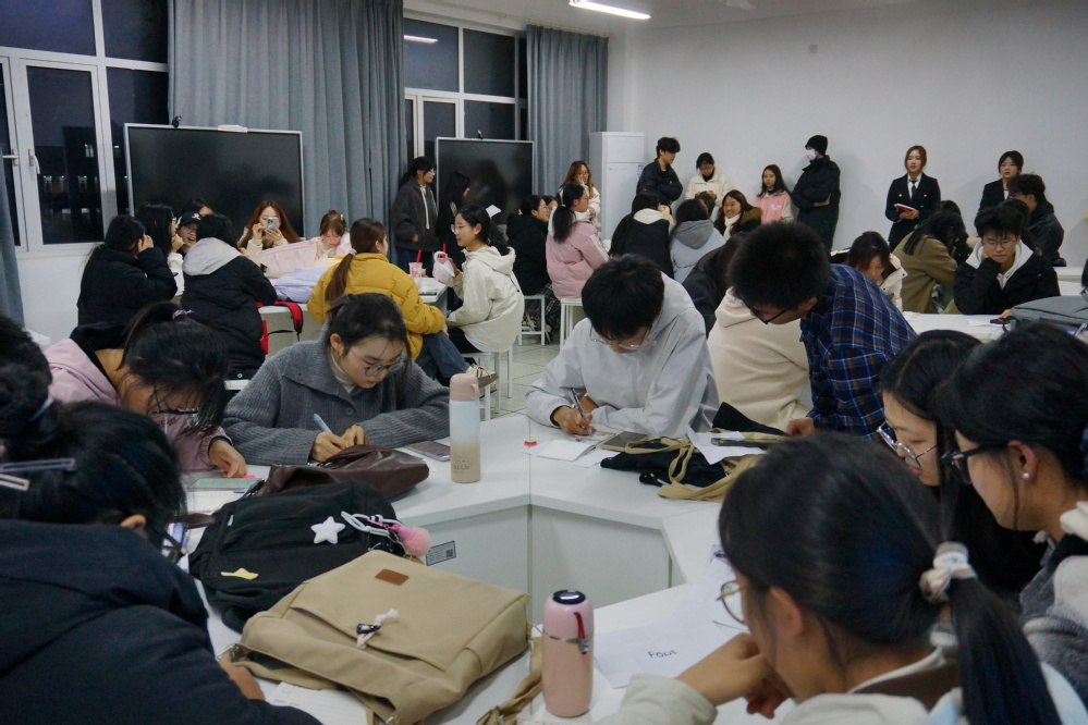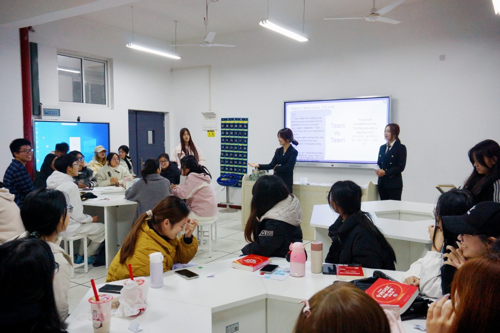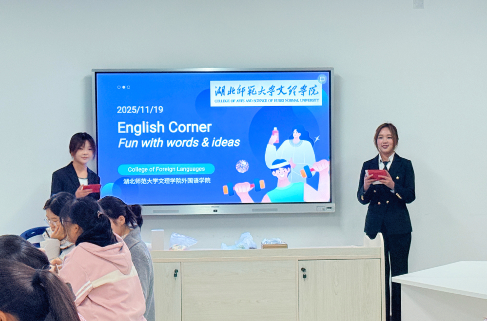 为营造浓厚英语学习氛围,提升学生跨文化交际能力,11月19日下午18:30,湖北师范大学文理学院外国语学院第三次英语角活动在三号实验楼505顺利落幕。活动由外国语学院院长郑桃云、党总支书记赵卫军精心统筹,学院团总支承办,专任教师向若怡到场指导,主办班级为商务英语2402班,吸引全院44名学生积极参与。