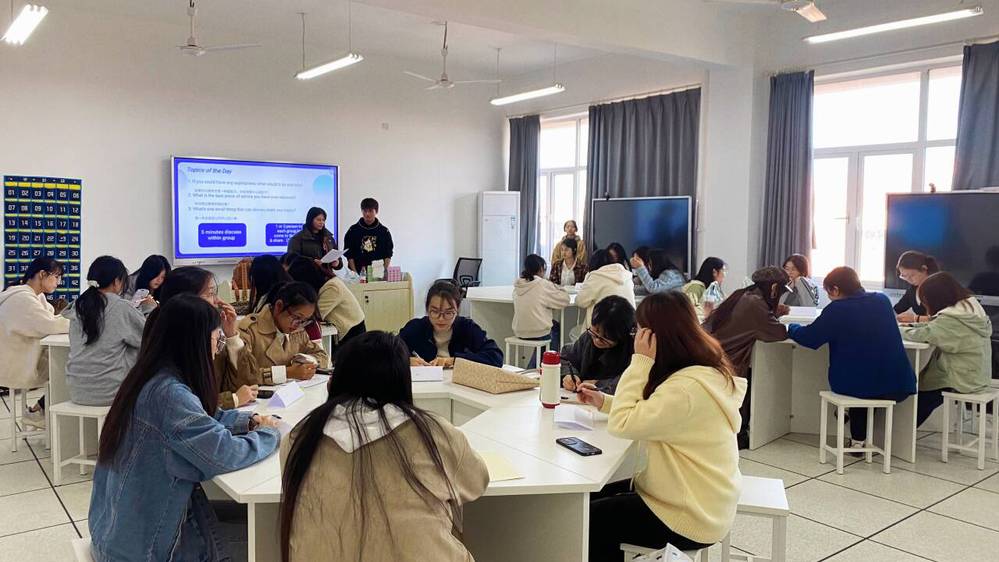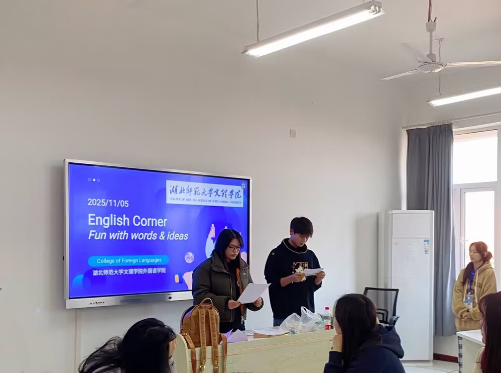 为营造浓厚的英语学习氛围,提升学生跨文化交际能力,2025年11月5日下午14:30,湖北师范大学文理学院外国语学院于三号实验楼505教室成功举办第二次英语角活动。本次活动在外国语学院院长郑桃云、党总支书记赵卫军的统筹组织下,由学院团总支承办,专任教师李阿欣到场指导。活动面向外国语学院全体学生,共有28名同学积极参与,主办班级为商务英语2401班。