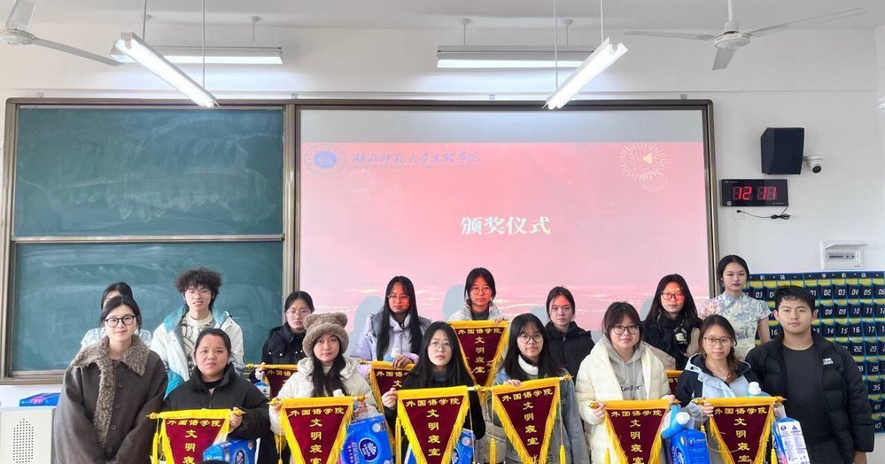 为切实推进优良学风建设,充分发挥先进集体的示范引领作用,2025年12月16日12时,湖北师范大学文理学院外国语学院优良学风班级及文明寝室评比活动在J3-310教室顺利举行。学工办负责人张一能、团学指导老师杨峰、宣传指导老师汪宜心、活动指导老师余天喜莅临现场,与学院23、24、25级全体学生共同参与本次活动。
