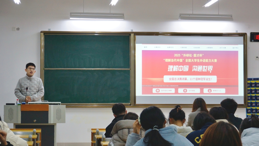 首先,薛行健老师围绕英语专业核心赛事展开详细讲解,重点介绍了“外研社·国才杯”系列大赛、“21世纪杯”全国英语演讲比赛等高水平竞赛,细致拆解各项赛事的参赛流程、备赛要点与选拔机制,引导同学们以赛促学、以赛提能,在实践中不断提升语言应用能力与综合素养。