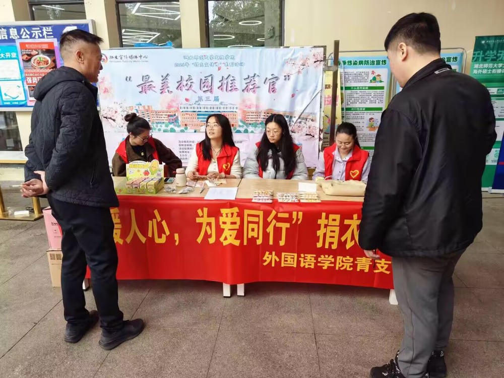 春风送暖,薪火相传。为深入践行雷锋精神,让奉献与爱心在春日传递,2026年3月26日至27日,外国语学院青年志愿者支队联合学院党支部,在全校范围内开展旧衣捐赠公益活动。活动分别在食堂空地、紫薇“一站式”学生社区服务中心设立爱心捐赠点,以自愿捐赠的形式,号召全校师生整理闲置衣物,传递温暖善意,让雷锋精神在实践中落地生根。