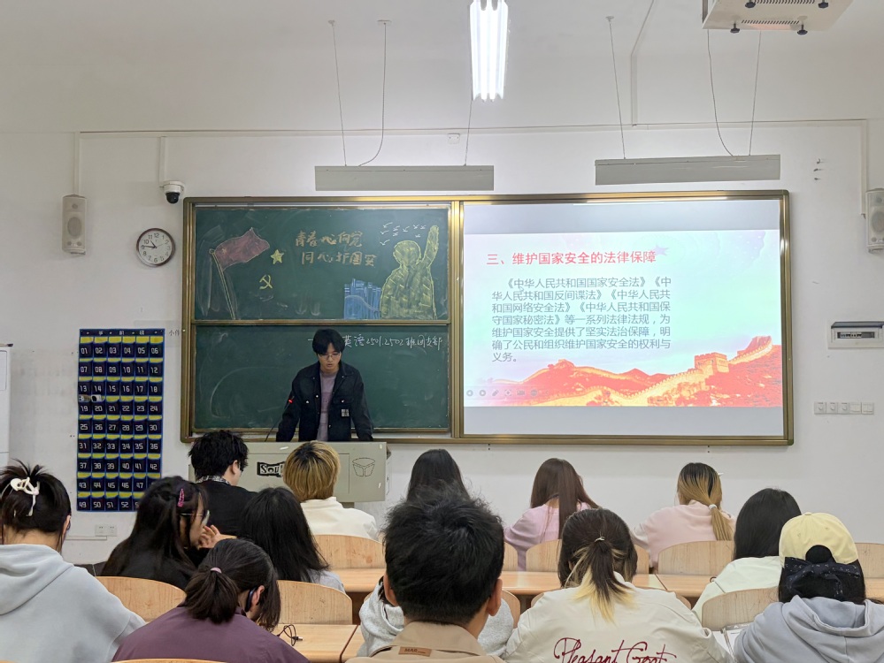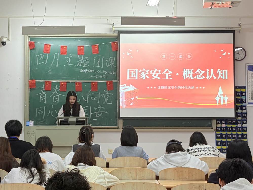 为深入践行总体国家安全观,引导青年团员以青春之我守护家国之安,将家国情怀融入血脉、化为行动,2026年4月15日19:00,外国语学院于1B308、1B309、1B310教室同步开展“青春心向党 同心护国安”主题团日活动。学院组织部统筹策划,各班团支部精心组织,全体团员积极参与,团学干部、干事担任评委,共同奏响青年与家国同心同向的奋进乐章。