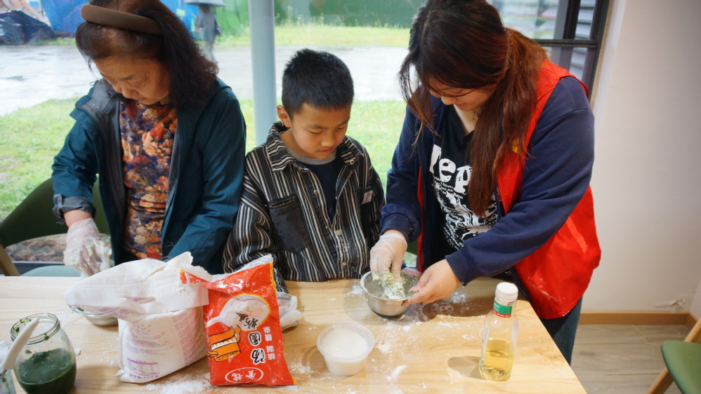 随后,进入制作青团环节,志愿者们提前备好青团的制作材料,孩子们在家长和志愿者们的协助下,亲手将春日的草木清香揉进面团,把团圆的美好期许包进馅料,一个个绿油油的青团,不仅是春日限定的美味,更是传统文化在新时代的生动实践。现场欢声笑语此起彼伏,小朋友互帮互助、其乐融融,更让传统民俗文化在社区焕发出新的生机与活力。蒸熟后的青团清香软糯,是春天的味道,更是文化传承的味道、邻里团圆的幸福。活动同步设置了学业辅导专区,志愿者们化身“小老师”,一对一为社区青少年答疑解惑、辅导作业,用耐心与专业为孩子们的学习助力,让家长们省心放心。