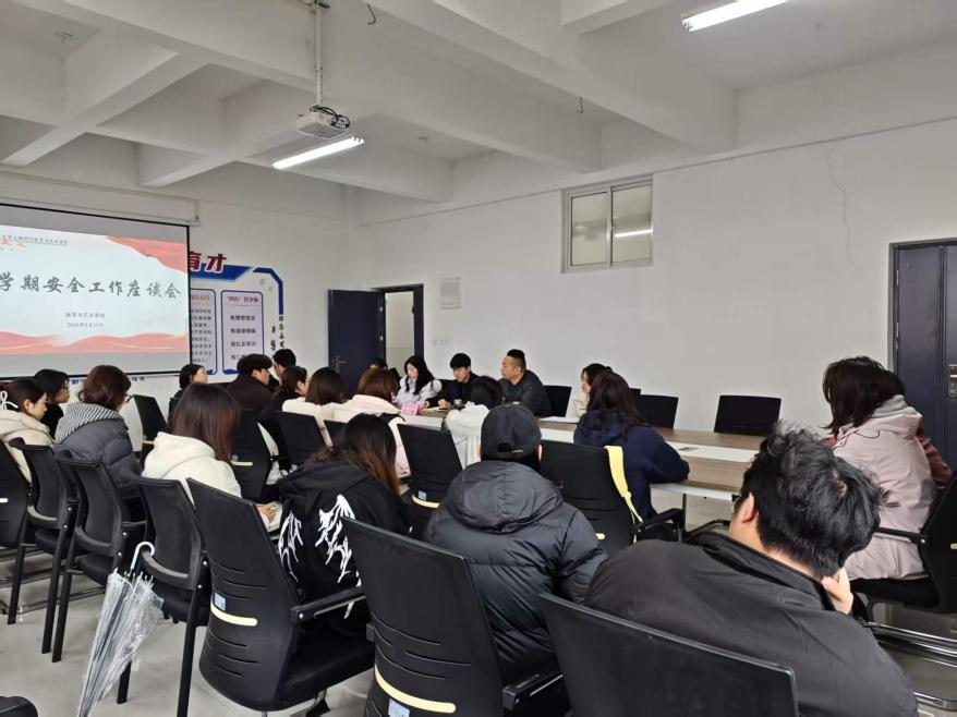为进一步加强校园安全管理,提升学生骨干的安全防范意识与工作能力,教育与艺术学院于2026年3月17日中午在1号实验楼414会议室召开新学期安全工作座谈会。学院党总支书记陈小龙、团总支书记谭青、团学指导老师韩幸,以及大一、大二年级全体安全副班长参加会议。会议由团学指导老师韩幸主持。