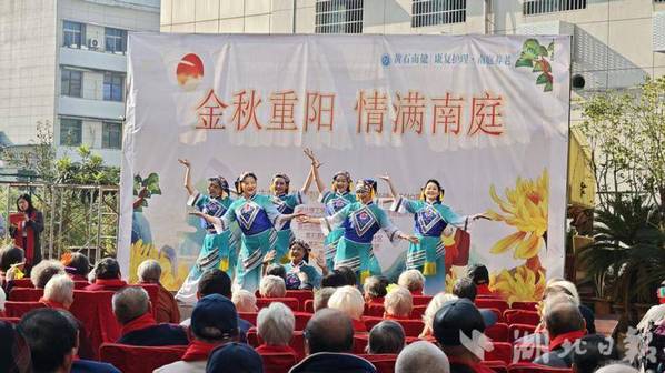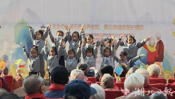 活动在欢声笑语中拉开帷幕。黄石二中校友艺术团舞蹈队以一支活力满满的开场舞《搞拐搭》点燃全场,迅速吸引了老人们的目光。随后,精彩节目接连上演:深情演唱的《感恩》《我和你》,用悠扬旋律传递对长辈的敬意与祝福;湖北师范大学文理学院志愿者带来的舞蹈《桃花朵朵开》,舞姿轻盈、朝气蓬勃,展现年轻一代对老人的真挚关怀;交运幼儿园的孩子们更是以稚嫩真诚的表演打动人心——舞蹈《中华孝道》生动诠释传统美德,朗诵《致敬爱的爷爷奶奶》则洋溢着纯真的温暖与敬意。