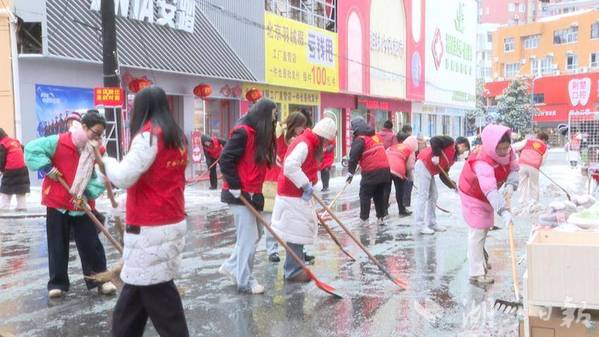 这场“青春铲雪行动”还吸引了更多力量加入。广水市义工联合会带着专业工具赶来支援,妇联机关干部也自发集结,大家你一铲、我一扫,干得热火朝天。