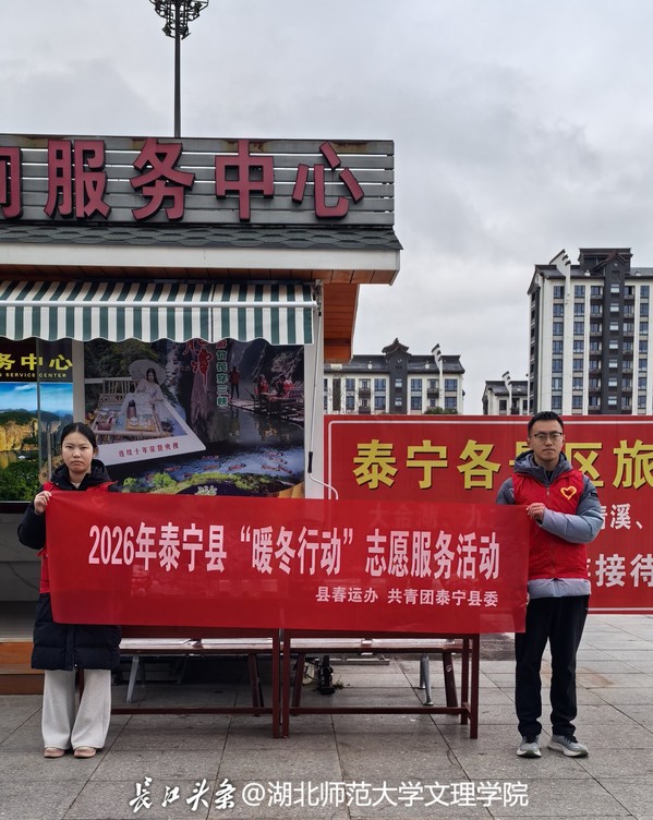 春归有期,暖护同行。2026 年 2 月 9 日上午,福建省三明市泰宁县动车站站前广场人流如织、暖意涌动。春运返程高峰的忙碌氛围里,一抹抹 “志愿红” 格外醒目。湖北师范大学文理学院人文学院学子嵇杰晨身着红色马甲,与其他返乡大学生志愿者一道,积极投身由泰宁县春运工作领导小组办公室与共青团泰宁县委联合组织的“暖冬行动・2026 寒假志愿服务” 活动,以青春之力护航春运,用实际行动反哺乡梓,彰显了新时代高校学子的责任与担当。
