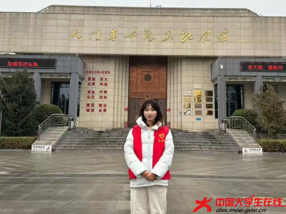 天门烈士陵园内,松柏苍翠、庄严肃穆,团队成员杨思琦怀着崇敬之心走进这片红色阵地。在高耸的烈士纪念碑前,她仔细整理好胸前的团徽,静静伫立、深深鞠躬,轻声默念碑上镌刻的每一位烈士姓名,以此寄托对革命先烈的缅怀之情。在陵园的革命史料展厅里,杨思琦驻足凝视、逐件端详每一件展品,不时停下脚步记录感悟,主动向讲解员请教烈士们的英雄事迹,沉浸式感受革命年代的峥嵘岁月。村民口中流传的红军故事,更让她真切体会到红色精神在天门大地的生生不息、代代相传,也深刻读懂了“红色种子”扎根大地、滋养人心的深刻内涵。