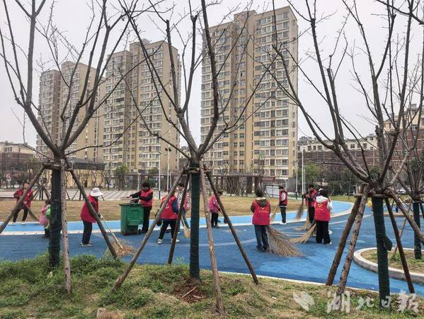 活动当天,尽管初春寒意未消,但志愿者们热情高涨。在社区统筹安排下,三方力量分工协作:青年志愿者们重点清理小区广场蓝色步道及绿化带内的纸屑、烟蒂等生活垃圾;社区微管家志愿者发挥熟悉辖区的优势,对健身器材缝隙、树木围挡处等卫生死角进行细致清扫;计划生育协会志愿者则在劳动间隙向过往居民宣传环保知识。“看到自己清扫过的地方变得干干净净,特别有成就感,以后有这样的活动我还来!”湖北师范大学文理学院志愿者楚顺凯一边清理垃圾一边笑着说道。红色的志愿马甲穿梭在社区各个角落,成为初春里一道温暖的风景线。