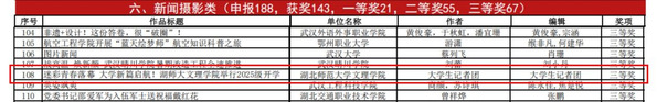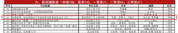 《市委常委、宣传部部长王玲来校督导检查食品安全工作》(作者李烨、邢博文、刘泓江)和《迷彩青春落幕大学新篇启航!湖师大文理学院举行2025级开学典礼》(作者大学生记者团)获新闻摄影类二等奖。