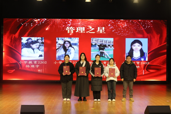 本网讯(图 张沁源 刘泓江 蒋睿龙 何若男 文 向莉莉 郑春好)12月23日晚,学术交流中心星光熠熠、掌声雷动。我校教育与艺术学院在此隆重举办2025年度“学院之星”表彰大会暨2024年度专业技能汇报演出。校党委副书记许光、副校长王红兵,学院相关部门负责人、师生代表等齐聚一堂,共同见证荣誉时刻,享受艺术盛宴。