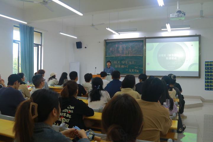 为深入贯彻落实校园安全工作要求,强化班级安全管理体系建设,切实提升学生安全防范意识和应急处置能力,10月16日中午12点,经济与管理学院在J3教学楼203教室开展了班级安全信息员专题教育培训会。本次会议由学院辅导员邓忻吾主讲,学院各班级副班长参加。