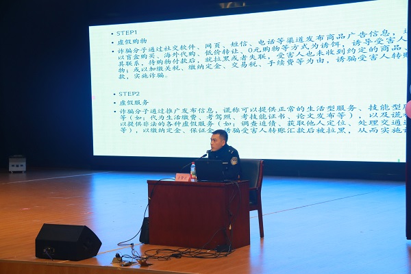 为提升学生反诈意识,守护财产安全,经济与管理学院于11月11日晚在学术交流中心举办“‘经’心反诈强意识,青春携手筑平安”反诈宣讲活动。本次活动特别邀请汪仁派出所民警余警官担任主讲嘉宾。