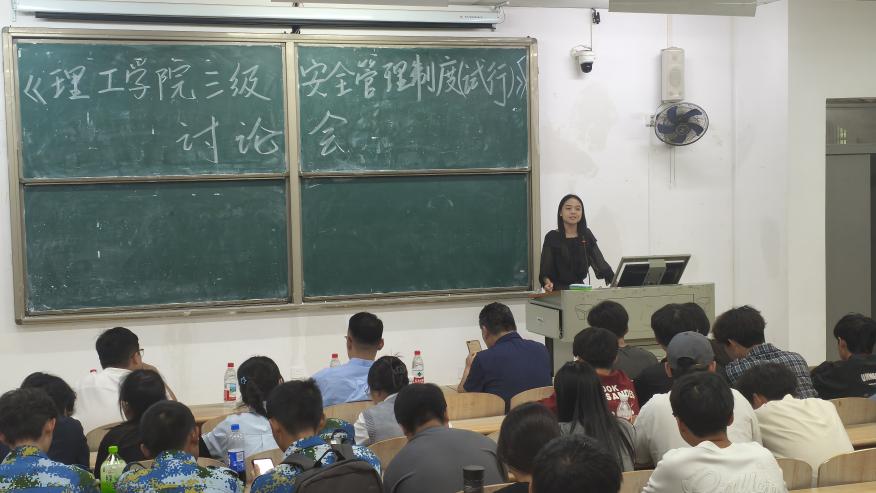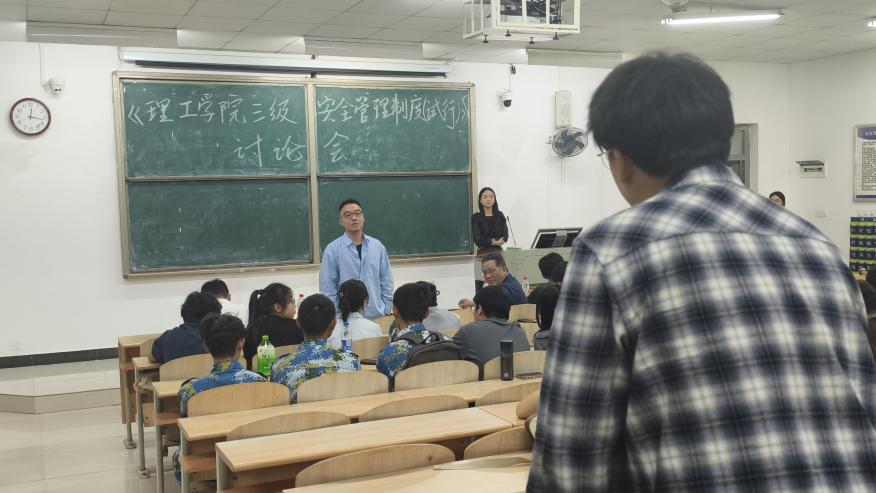 为深入推进学院三级安全管理试点工作,完善安全治理体系建设,夯实校园安全稳定基础,9月25日中午,理工学院在教学楼成功召开《理工学院三级安全管理制度》(试行)草案专题讨论会。学院副院长潘继斌、党总支副书记张弛,综合办、学工办、团总支负责人,全体辅导员以及学院各班级班长、副班长、团学主要干部以及寝室长代表共同参会。会议由学工办马艺静老师主持。