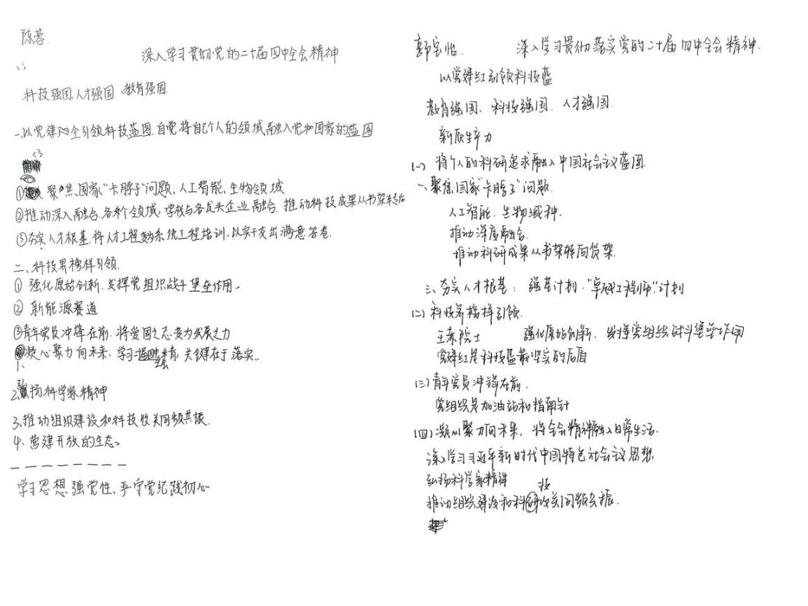 为巩固和深化学习效果,党课结束后征集优秀入党积极分子、预备党员、中共党员优秀党课笔记,通过笔记评选活动,进一步激发了师生们对党课内容的深入思考与总结提炼。这些笔记不仅记录了党课的重要精神,更展现了师生们积极向上的精神风貌和坚定的理想信念。