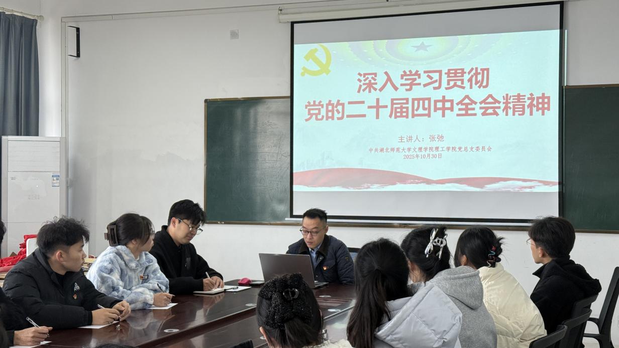 参观结束后,全体人员在实验楼4-507会议室开展了专题党课学习。学院党总支副书记张弛同志以《党建红引领科技蓝》为题,紧扣党的二十届四中全会关于教育、科技、人才工作的战略部署,结合学院发展实际进行了深入宣讲。