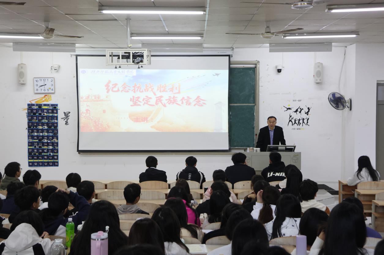 校长李开灿、副校长王胜国围绕纪念中国人民抗日战争和世界反法西斯战争胜利80周年这一主题,分别于10月28日上午、11月13日下午,在1B213、1A304教室进行授课。李开灿带领学生回望艰苦卓绝的抗战历程,清晰说明了中国共产党的中流砥柱作用,深刻阐述了中国人民为世界反法西斯战争胜利所付出的巨大民族牺牲与作出的卓越贡献。他着重指出,青年大学生要警惕历史虚无主义,坚决抵制否认和美化侵略战争的错误言行。王胜国重点解读了中国人民抗日战争伟大胜利的历史意义及其蕴含的伟大抗战精神,他呼吁全体学生铭记历史、缅怀先烈,以史为鉴、开创未来,从伟大胜利中汲取奋进力量,勇担实现中华民族伟大复兴的时代使命。