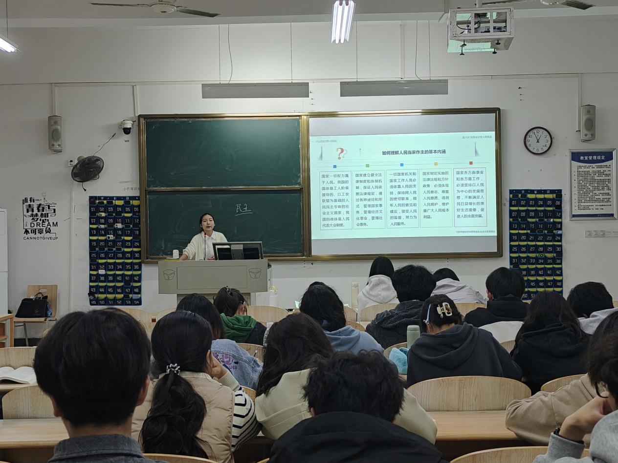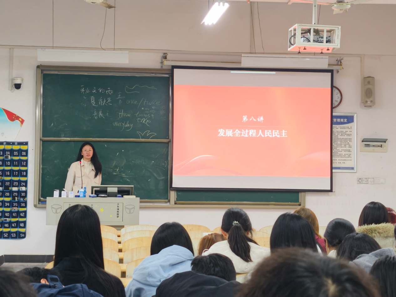 柳双庆、陈文丽、刘茜三位老师,分别围绕“全过程人民民主是社会主义民主政治的本质属性”“全过程人民民主是全链条、全方位、全覆盖的民主”“从新民主主义到社会主义的转变”等核心教学内容进行教学展示。比赛过程中,各位教师通过精心的课堂设计、富有感染力的语言表达与生动的案例呈现,充分展现了各自的教学特色与课堂驾驭能力。