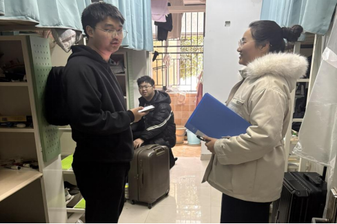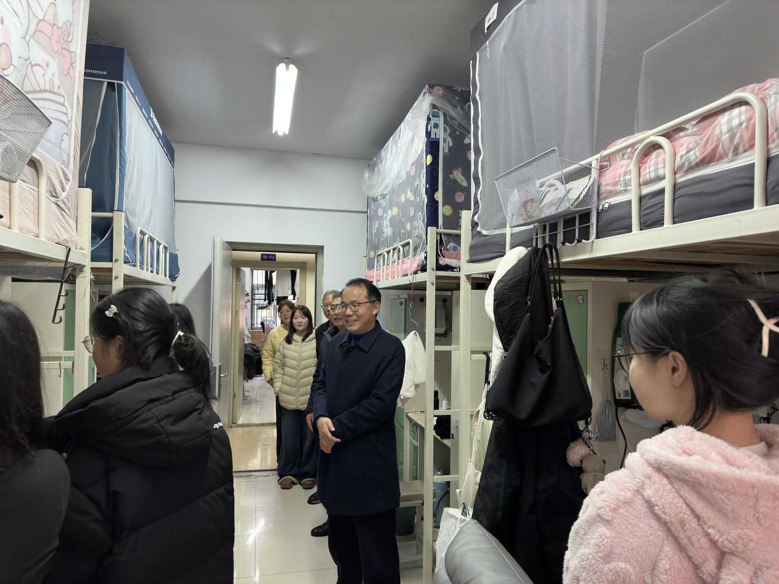 走访过程中,每到一间宿舍,王校长都与同学们进行了亲切交谈。“家是哪里的?”“路上顺利吗?”“假期过得怎么样?”“新学期有什么计划?”一句句贴心的问候,瞬间拉近了师生之间的距离。王校长勉励同学们,新学期是新的起点,要尽快调整状态,从假期的节奏中走出来,以饱满的热情和昂扬的精神面貌投入到新学期的学习生活中去。他叮嘱大家要珍惜大学时光,明确学习目标,夯实专业基础,同时也要注重全面发展,积极参与校园文化活动,不断提升综合素质