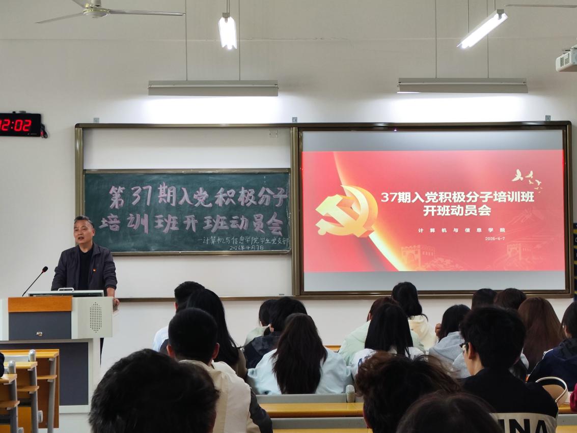 202647日中午,计算机与信息学院在J3-101教室召开第37期入党积极分子培训班开班前动员会。学院党总支副书记肖圣芳、学生党支部书记王洁、学生党支部副书记李碧佳出席会议,全体参训学员按时参会。