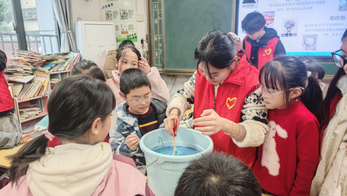 2025年12月19日下午,计算机与信息学院学生党支部与学院团总支携手组成志愿者团队,走进湖滨路小学,共同开展“巧手拾非遗,童心传文脉”主题志愿服务活动,为小朋友们带来了一堂别开生面的非遗手工体验课。
