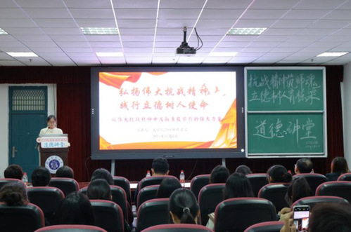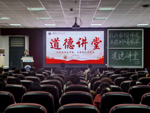 为弘扬伟大抗战精神,厚植师生爱国情怀,践行“为党育人、为国育才”初心使命,11月6日下午,文学院于信息大楼报告厅举行“抗战精神筑师魂,立德树人育栋梁”道德讲堂活动。文学院党委书记车录彬、院长李治平、院党委副书记郭笑笑、副院长彭江浩、副院长杨文军;学院师生党支部书记及委员、行政办公室人员;学院学生党员、入党积极分子、学生干部代表参加活动。活动由汉语言文学2402班熊祎琳主持。