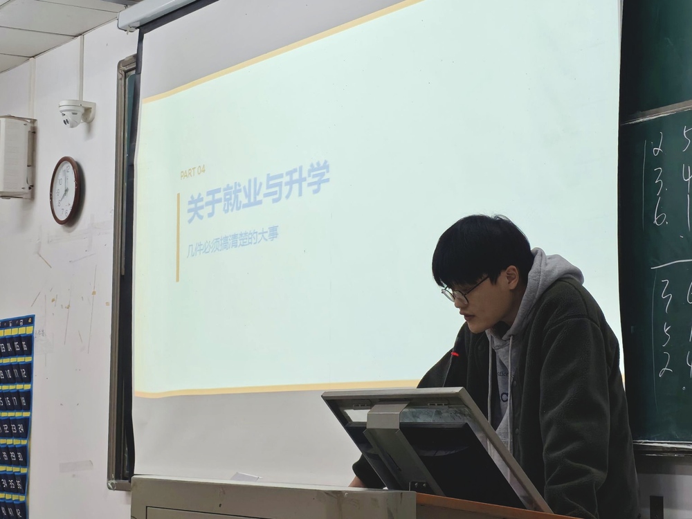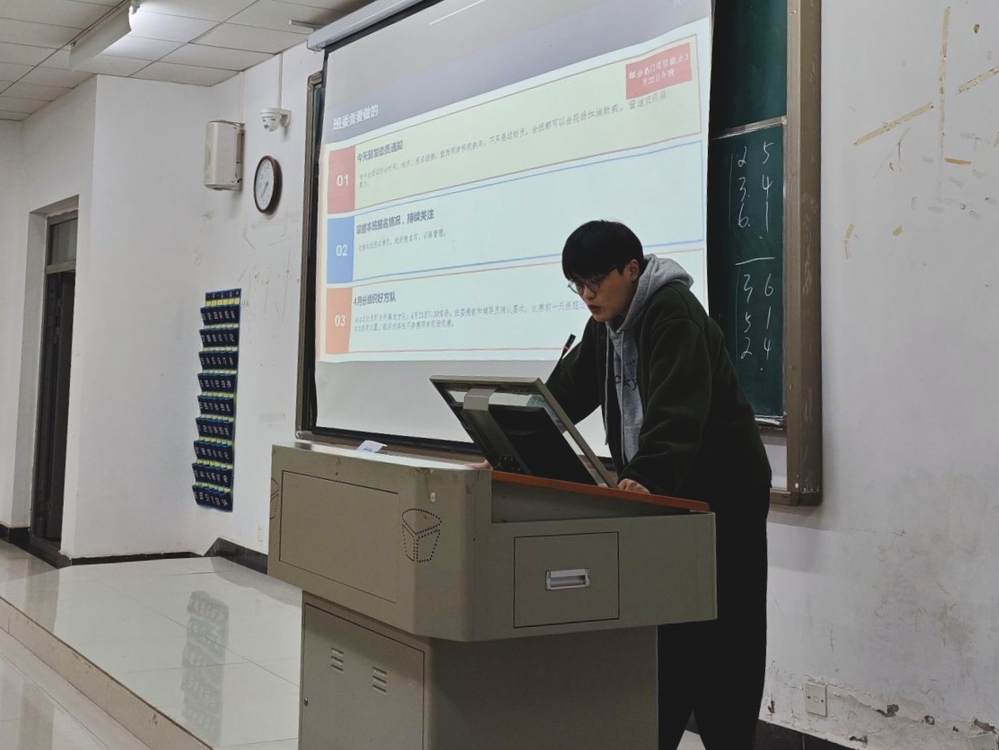 毛主任对班委履职提出多项重要提醒,针对专升本,他提醒同学们务必重视学业,杜绝挂科,避免因成绩问题影响报名资格,班委需及时传达关键信息,避免同学错过重要时间节点;对于转专业同学,叮嘱班委主动关心,帮助其快速融入班级集体;同时,强调规范作息、加强锻炼,关注同学心理健康,引导有需求的同学寻求心理咨询帮助,营造健康向上的班级氛围。