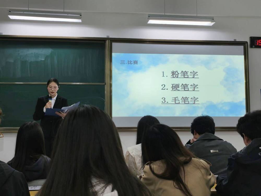 本次比赛由院团学主办,团总支学习部承办,设置硬笔书法、粉笔字、毛笔字三个参赛项目,围绕书写规范度、字体美观度、整体布局与卷面效果等维度开展综合评比。比赛现场秩序井然,硬笔书法与粉笔字参赛选手分批同台竞技,在评委抽取的指定内容下,凝神静气、挥毫落笔,一撇一捺尽显功底笔墨浓淡间彰显汉字韵味。参赛选手们以笔为媒,将认真严谨的态度融入每一个笔画,一幅幅字迹工整、布局匀称的作品,充分展现了他们对汉字书写的热爱与扎实的书写功底。