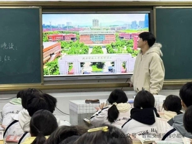 湖北师范大学文理学院智能交通与应用学院学子张智宇带领团队,于2025年寒假回到湖北省黄冈市黄冈遗爱湖中学,开展“把最美湖师文理带回母校”宣传实践活动。