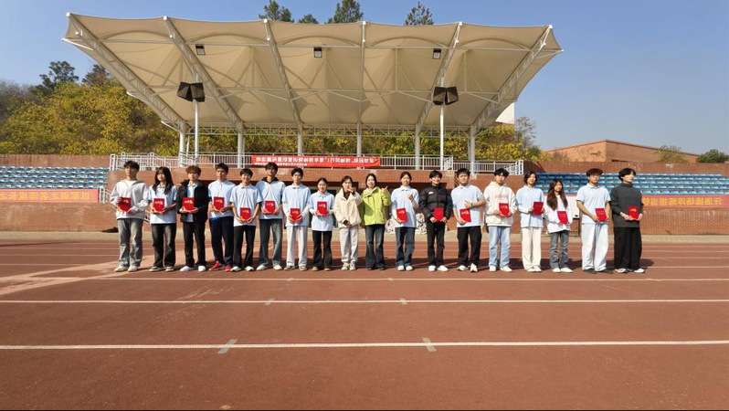 活动进入总结分享阶段,首先由最后一名的队伍接受集体惩罚,随后各队队长依次上台发言,详细分享了活动中的收获与体会。学院团学指导老师魏欣进行总结讲话,对本次拓展活动的圆满举办表示祝贺,肯定了全体同学在活动中展现的团结协作精神、积极进取态度与良好精神风貌,鼓励大家将活动中收获的信任与默契转化为今后工作的动力,以青年领袖的责任与担当,为学院发展贡献青春力量。随后,团学指导老师魏欣、石卉为优秀团队授奖,全员合影留念,定格下这一难忘的集体时刻。