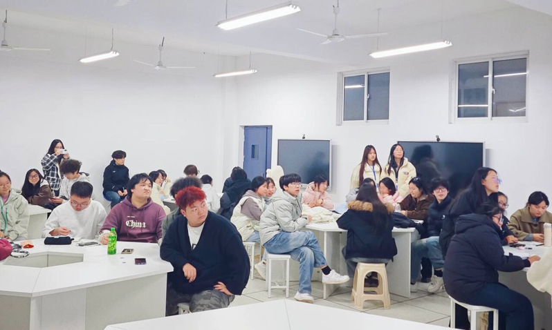 为厚植校园英语学习氛围,锤炼学生跨文化交际素养,12月3日18:30,湖北师范大学文理学院外国语学院第四次英语角活动在三号实验楼505成功举办。本次活动由外国语学院院长郑桃云、党总支书记赵卫军统筹部署,学院团总支牵头承办,专任教师伍晓晴现场指导,应用英语2401、2402、2403班联合主办,41名学子齐聚一堂,共赴这场趣味盎然的英语研学之旅。