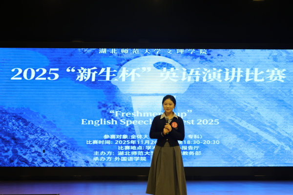 本网讯(图 张沁源 蒋睿龙 朱肜丞 文 刘豫宜 刘昕婷)“从小镇教室的琅琅书声到国家‘双一流’建设的宏伟蓝图,我将个人的求学梦编织进伟大的教育强国梦中……”11月26日晚,我校学术交流中心,一位参赛选手正用流利的英语娓娓道来。这里正在举行的,是备受瞩目的“新生杯”英语演讲比赛决赛。六百余名师生齐聚一堂,共同聆听了一场以“My ‘Chinese Dream’ as a Young College Student”为主题的英文演讲比赛。教务部部长刘江燕围绕“青年大学生的中国梦”主题寄语参赛学子。外国语学院院长郑桃云鼓励选手以自信从容的姿态,展现新时代大学生的精神风貌。