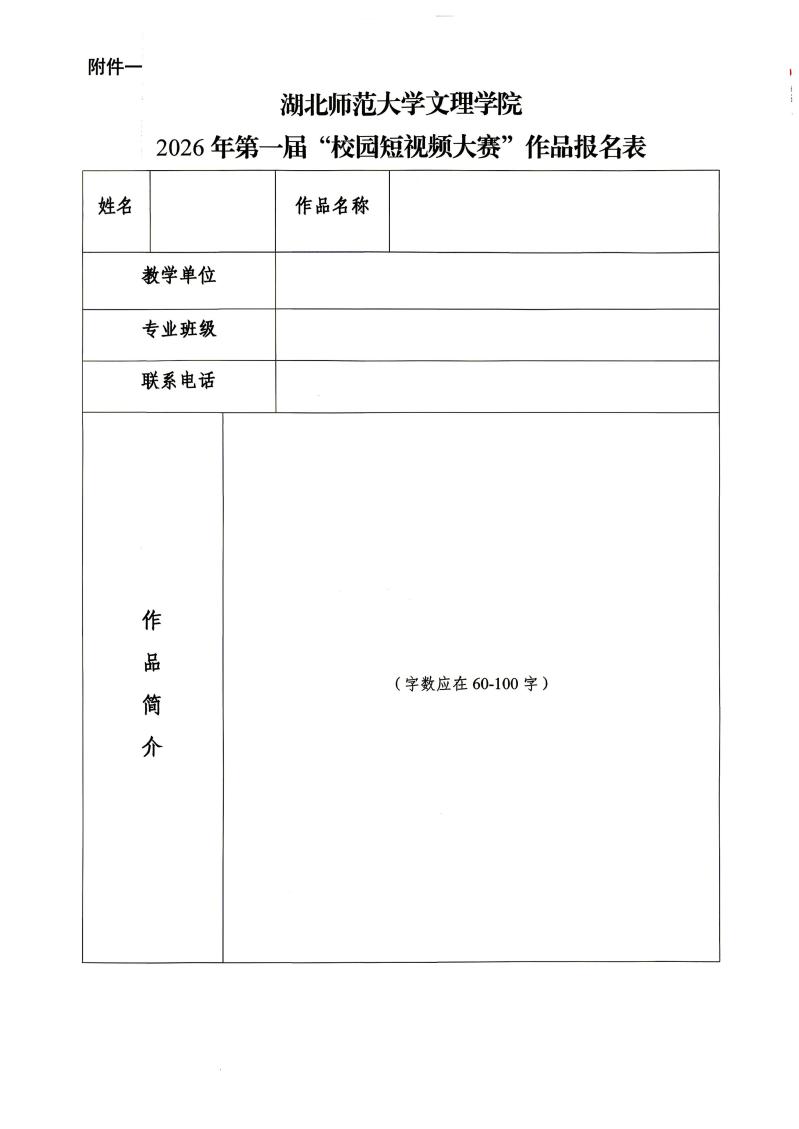 附件一:2026年第一届“校园短视频大赛”作品报名表.docx